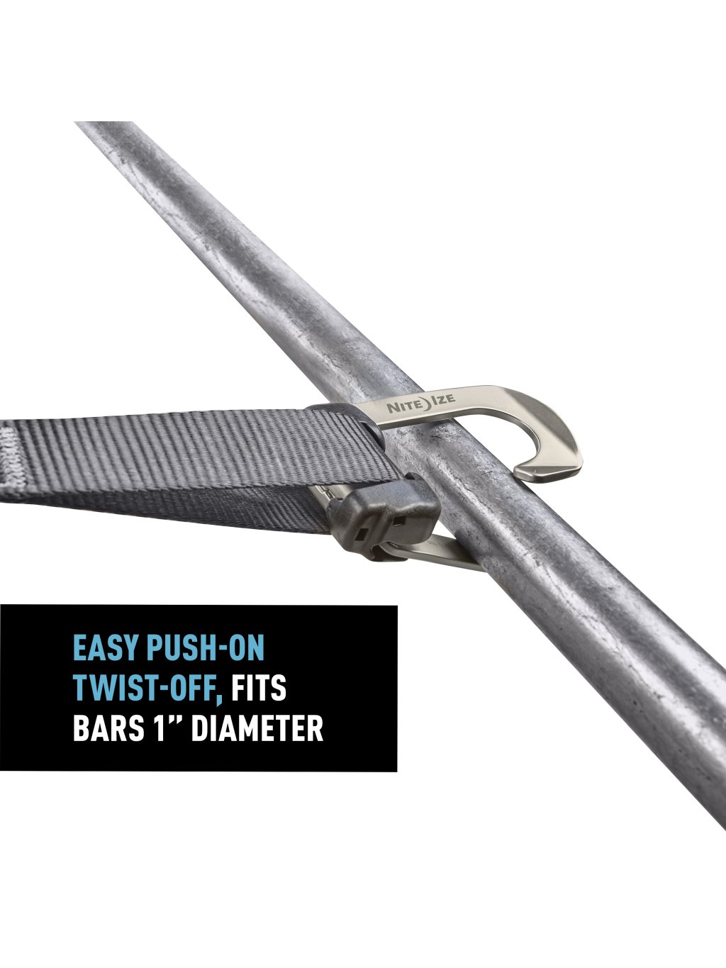 Připojte HookLock k velkému oku a přímo ke kotevním bodům až do šířky 1” (2,5 cm).