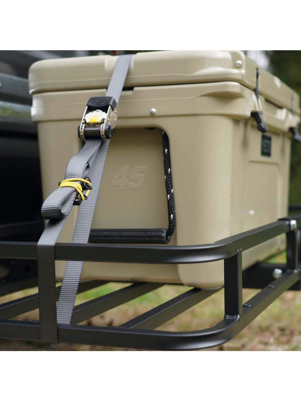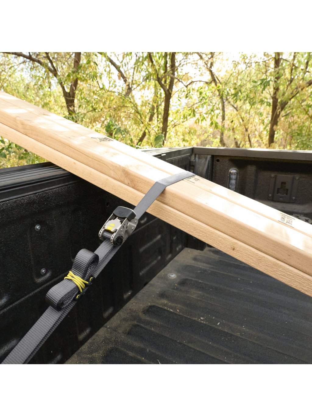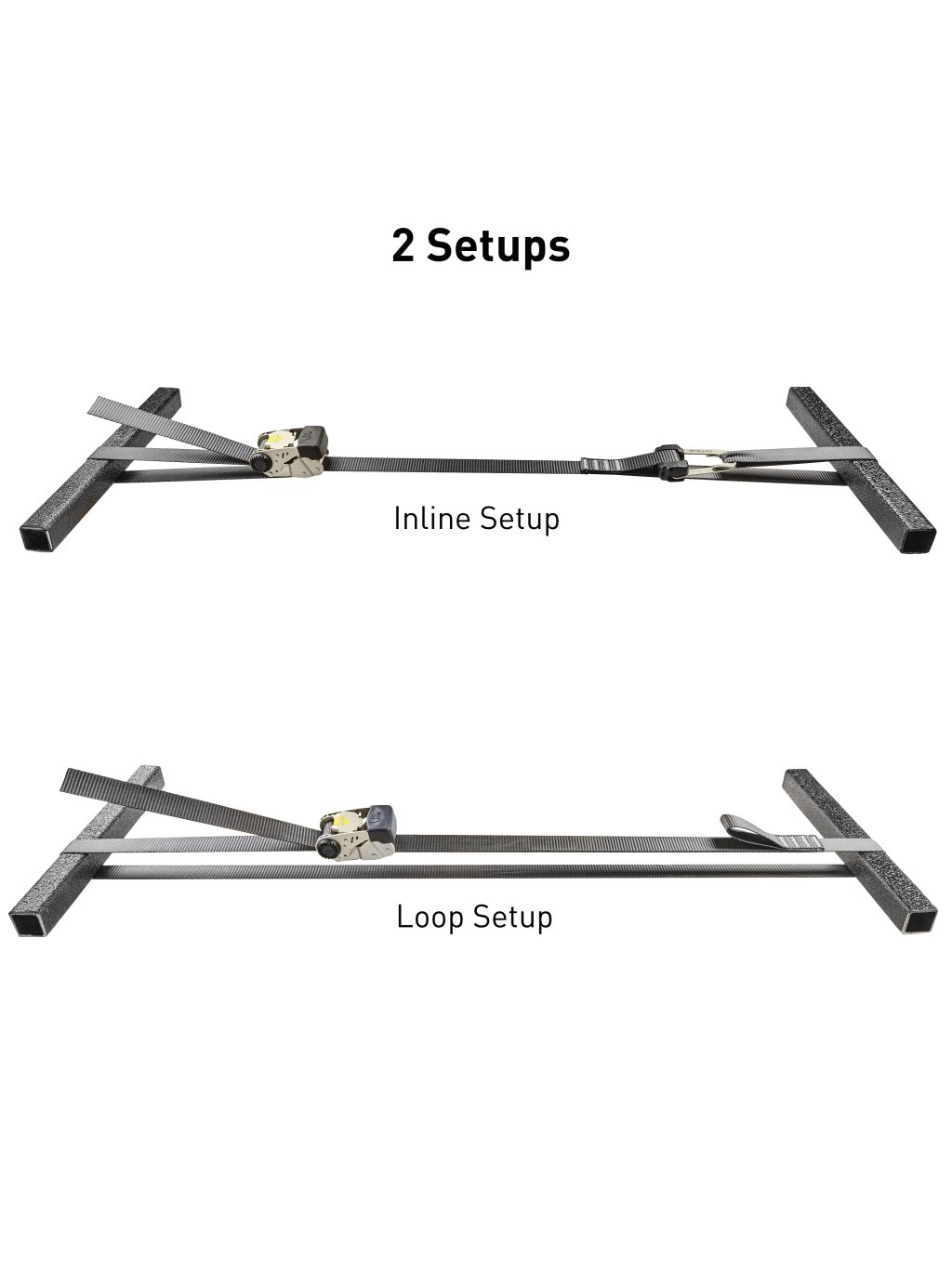 Systém obsahuje první odnímatelnou a nastavitelnou ráčnu, která umožňuje její umístění kdekoliv na popruhu pro snadný přístup a větší flexibilitu při upevňování středně těžkých nákladů (pracovní zatížení až 500 liber / cca 227 kg).