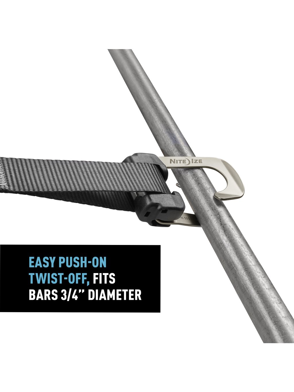 Součástí je také pružinový hák HookLock Strap Hook, který využívá jednoduchý systém nasazení tlakem a sejmutí otočením – okamžitě se uchytí na různé kotevní body a zůstane připevněný i bez napnutí, na rozdíl od běžných ráčnových háků.