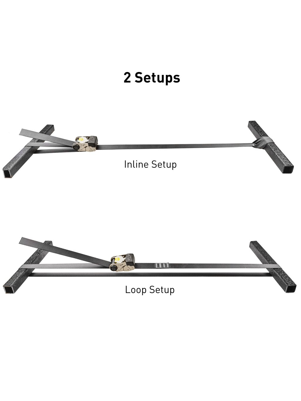 Celý systém podporuje více konfigurací – přímé napnutí (inline) i smyčkový způsob uchycení (loop setup) – mezi nimiž lze jednoduše přepínat podle aktuálních potřeb při přepravě.