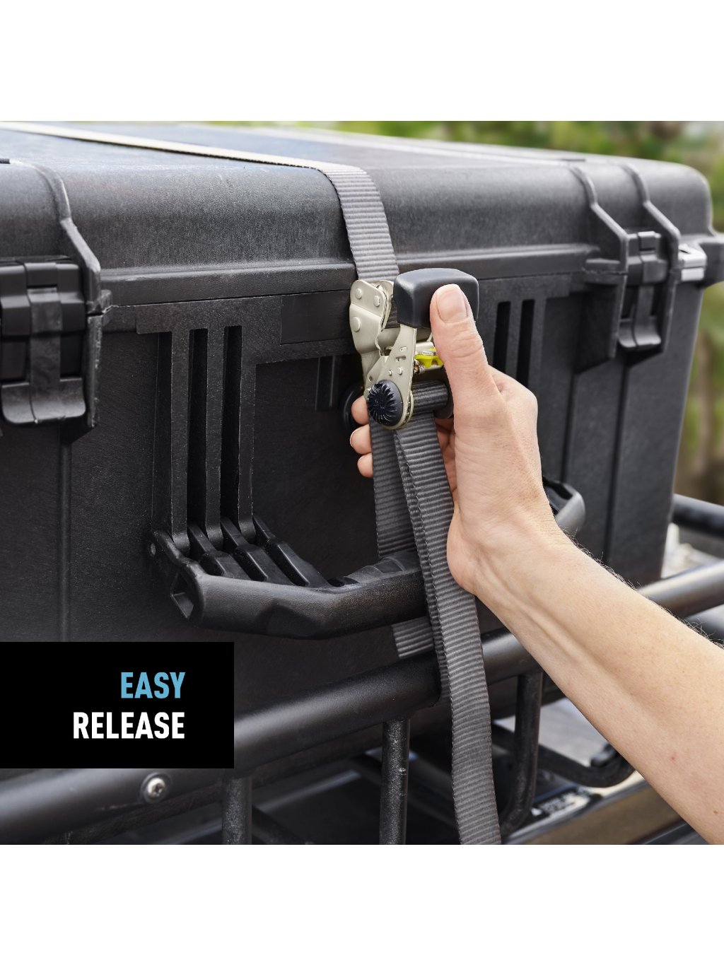 Upínací systém CamJam Ratchet Strap představuje revoluční přístup k ráčnovým popruhům, navržený s důrazem na uživatelský komfort. Nabízí vylepšenou konstrukci a delší životnost. Obsahuje extrémně odolnou sponu z oceli a 3,7 m polyesterový popruh s jednoduchou smyčkou.